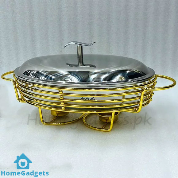 Crafted for durability, the stainless steel or golden frame ensures sturdiness and adds a touch of luxury to your dining table. Its compact 2-liter size makes it practical for medium servings while still offering elegance and class. Whether you are a host preparing for a big family dinner in Karachi or a restaurant in Lahore setting up a buffet line, this dish makes food serving effortless and stylish.