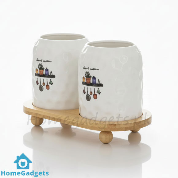 2-piece utensil holders with bamboo stand