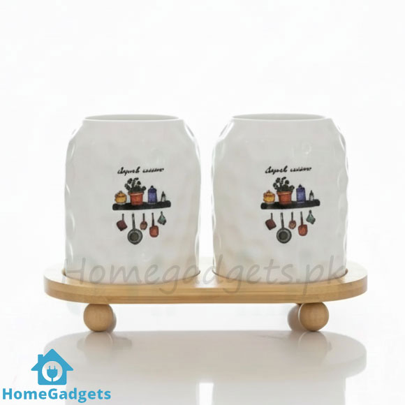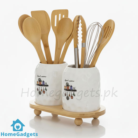 2 Piece Spoon Organizer with Bamboo Stand – Kitchen Utensil Holder Price in Pakistan