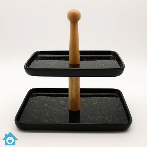 2 Tier Serving Tray with Wooden Stand – Black Price in Pakistan