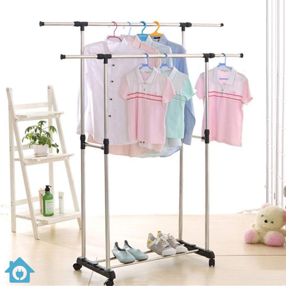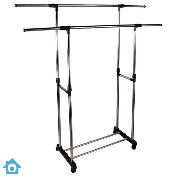 Adjustable Double Garment Rack DIY Clothes Hanger Movable Dryer Stand Rolling Clothes Rack Price in Pakistan Description
