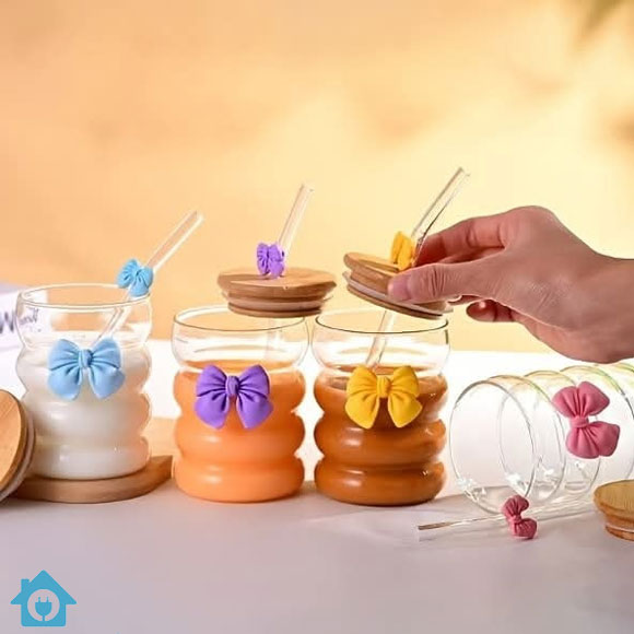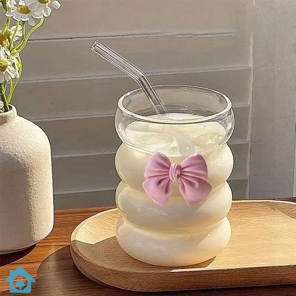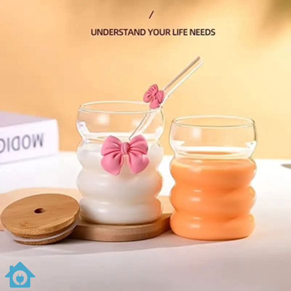 Enjoy your favorite beverages in style with the Bow Wavy Ice Tea Glass with Straw & Bamboo Lid, combining elegance with eco-friendly design.