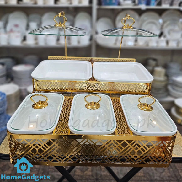 BRILLIANT 5 Portion Buffet Dish with Golden Stand Price in Pakistan
