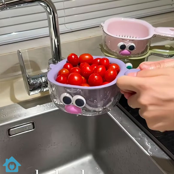 Make your kitchen routine easier and more organized with this Cartoon Drain Basket Double-Layer Food Grade Washing Tool Set. Designed with a cute cartoon style and practical functionality, this multifunctional kitchen basket is perfect for washing, draining, and storing fruits and vegetables conveniently. The double-layer design includes an inner strainer basket and an outer container that collects excess water, preventing mess on your countertop or sink area. Whether you are rinsing strawberries, grapes, tomatoes, leafy vegetables, or other fresh produce, this smart drain basket allows you to wash and drain in one compact solution. Its attractive cartoon design also adds a fun and modern touch to your kitchen décor while keeping everything neat and organized.
