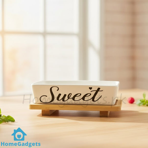 Elegant Creamic Sweet Dish with Wooden Tray – perfect for serving sweets, desserts, and dry fruits. A stylish and durable serving set ideal for home décor or gifting.