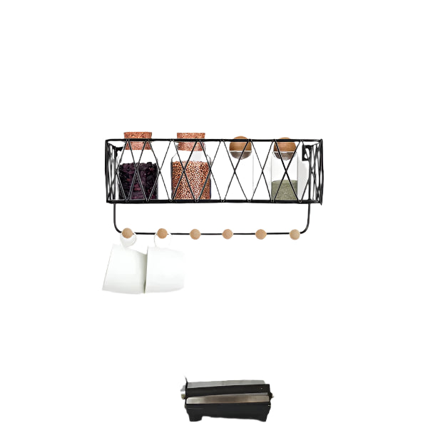 Material: Iron+Wooden Balls Package Includes: 1 Rack + 2 Stickons Size: 12 inch Length, 6 inch height, 4.6 inch width. Wooden Balls Hooks: 5 keeps keys, mail, leashes, notes, accessories, lanyards, and more organized convenient access.