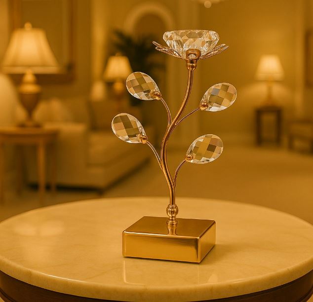 Crafted with precision and attention to detail, this candle stand isn’t just a decor item—it’s a statement piece. The radiant golden finish and crystal embellishments reflect light beautifully, creating a warm and inviting ambiance. Whether you’re using it to light up your dining table, wedding stage, or living room, this candle holder adds charm and elegance to every occasion.