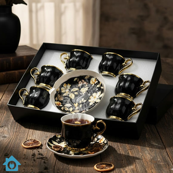 Serve tea in style with this Floral Bone China Tea Cup Saucer Set with Gold Rim, perfect for elegant homes and special occasions.