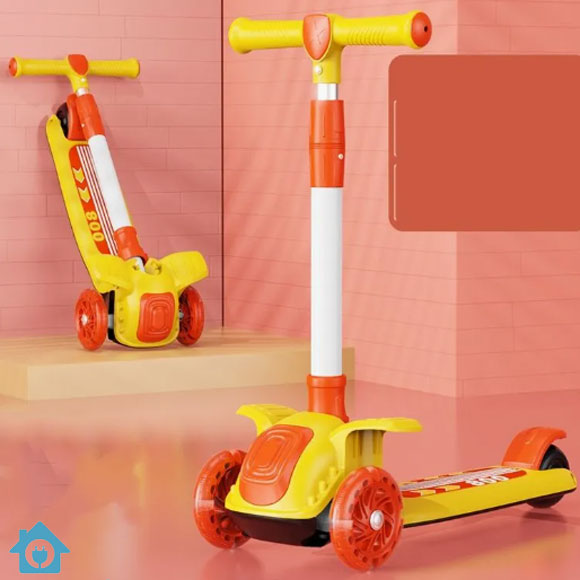 This kick scooter for kids features an adjustable handle, foldable design, and removable seat, making it perfect for toddlers and growing children. Ideal for safe, fun indoor and outdoor rides.