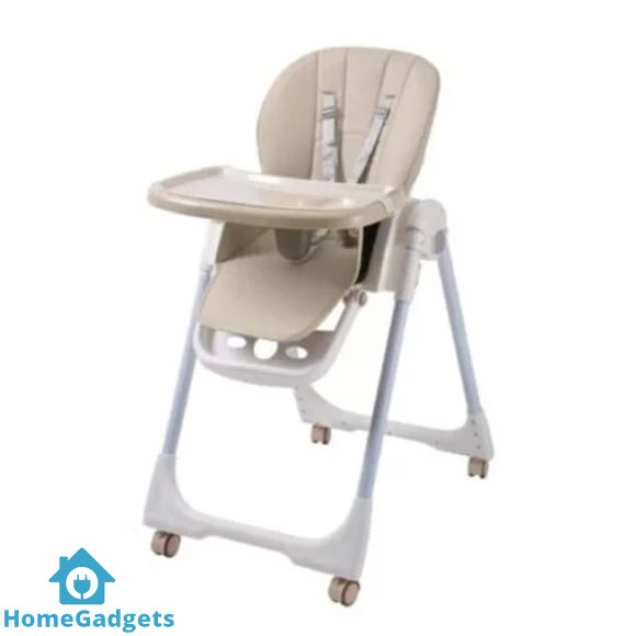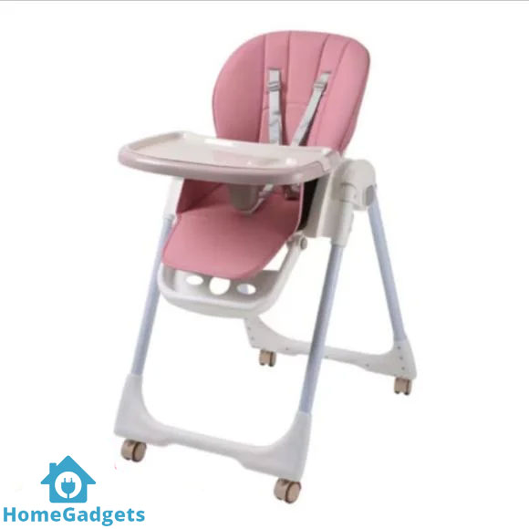 The chair’s soft padded seat keeps your baby comfortable during feeding, playtime, or snack breaks, while the five-point safety harness ensures they stay securely in place. The wheels on the base make it easy to move the chair from one room to another, and the foldable design allows you to store it away without taking up much space — perfect for apartments and small homes in cities like Karachi, Lahore, and Islamabad.