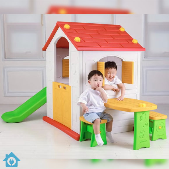 Kids Playhouse with Slide Table Chairs CHD-503. Made in Korea with safe durable plastic for indoor and outdoor fun.