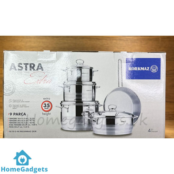 Whether you are setting up a new kitchen, upgrading your cookware collection, or searching for the perfect wedding gift in Pakistan, the Korkmaz Astra Extra 9 Pcs Cookware Set is an investment in quality, health, and elegance.