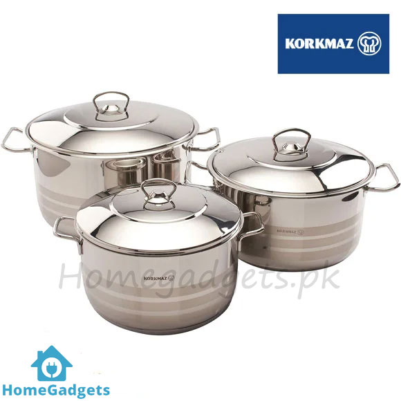 The Korkmaz Mega Plus Cookware 6 Pcs Set is a premium-quality cookware collection designed to meet the needs of modern Pakistani households. Perfectly blending durability, style, and functionality, this set is crafted with Turkish precision and high-grade stainless steel to make everyday cooking easier, healthier, and more enjoyable. Whether you are cooking for your family or hosting guests, the Korkmaz Mega Plus Cookware Set offers everything you need in one convenient package.