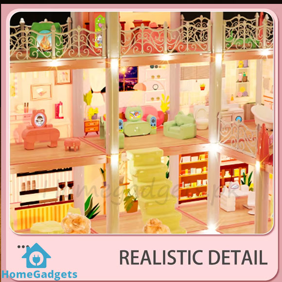 Give your child the gift of imagination with the Luxury DIY Dollhouse Castle Playset in Pakistan. A dream house with lights, slide, and furniture that brings endless fun and learning. Shop today from Homegadgets.pk and enjoy best prices, cash on delivery, and fast nationwide delivery.
