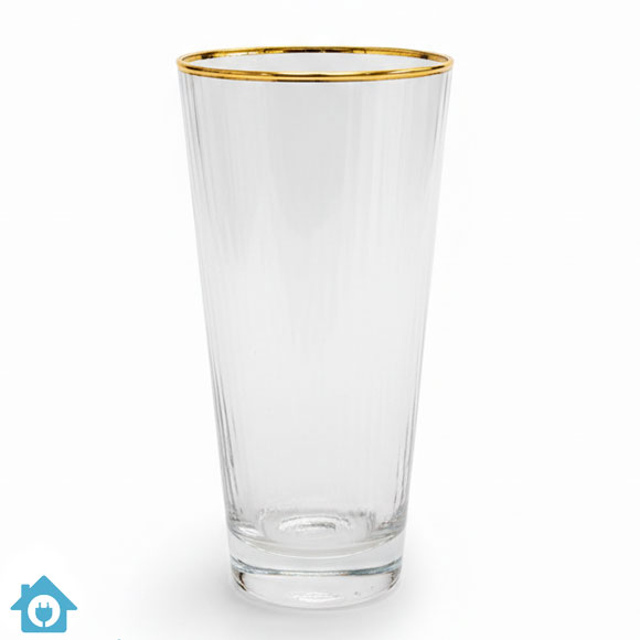 Upgrade your tableware with this Luxury Gold Rim Ribbed Glass Tumbler Set of 6, featuring an elegant chic design, premium glass quality, and a sophisticated gold rim finish.