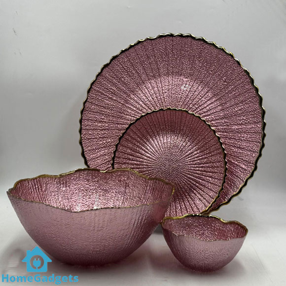 Elevate your dining and serving experience with the Luxury Round Textured Fruit Bowl & Cake Plate Set – 14 Pieces.
