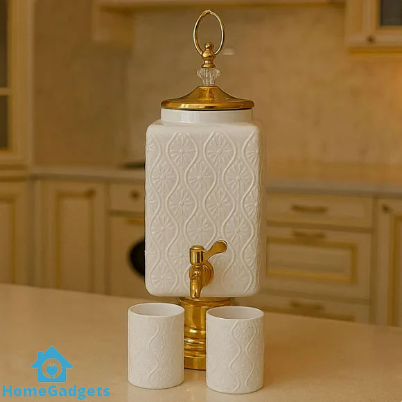 The glass dispenser is designed with a convenient leak-proof tap for easy pouring and a secure lid to keep beverages fresh and dust-free. With a generous capacity, it’s ideal for serving your favorite drinks like Rooh Afza, lemonade, juices, sherbet, cold coffee, lassi, or infused water. Whether it’s a Ramadan iftar, Eid party, mehndi function, or a simple family dinner, this set is a standout centerpiece.