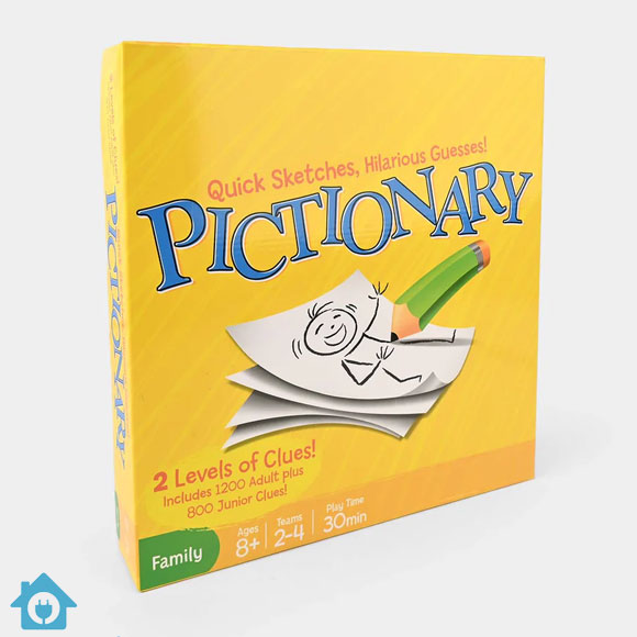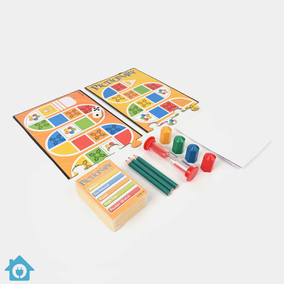 The Pictionary Board Game (Model No. 0125D) is a fast-paced drawing and guessing game that guarantees laughter for kids, teens, and adults. Players draw quick sketches while teammates race against time to guess the correct word or phrase, making every round exciting and hilarious.