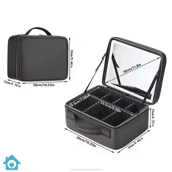 Vanity Organizer with LED Mirror. Smart, adjustable LED cosmetic and makeup organizer for home and travel. Stylish and functional beauty storage.